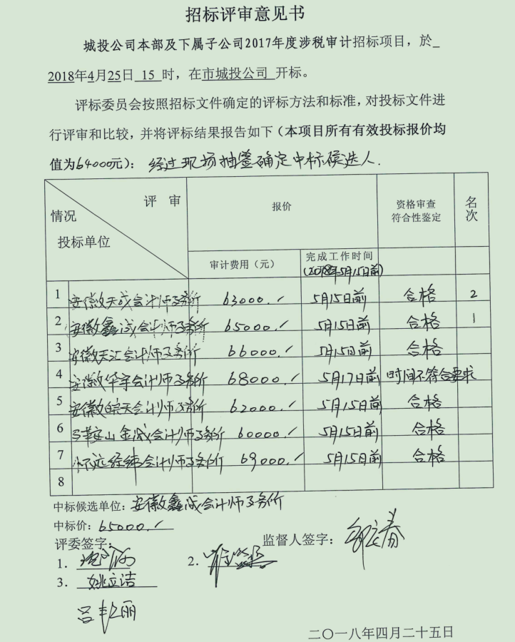 城投公司本部及下屬公司2017年涉稅審計(jì)招標(biāo)結(jié)果公示