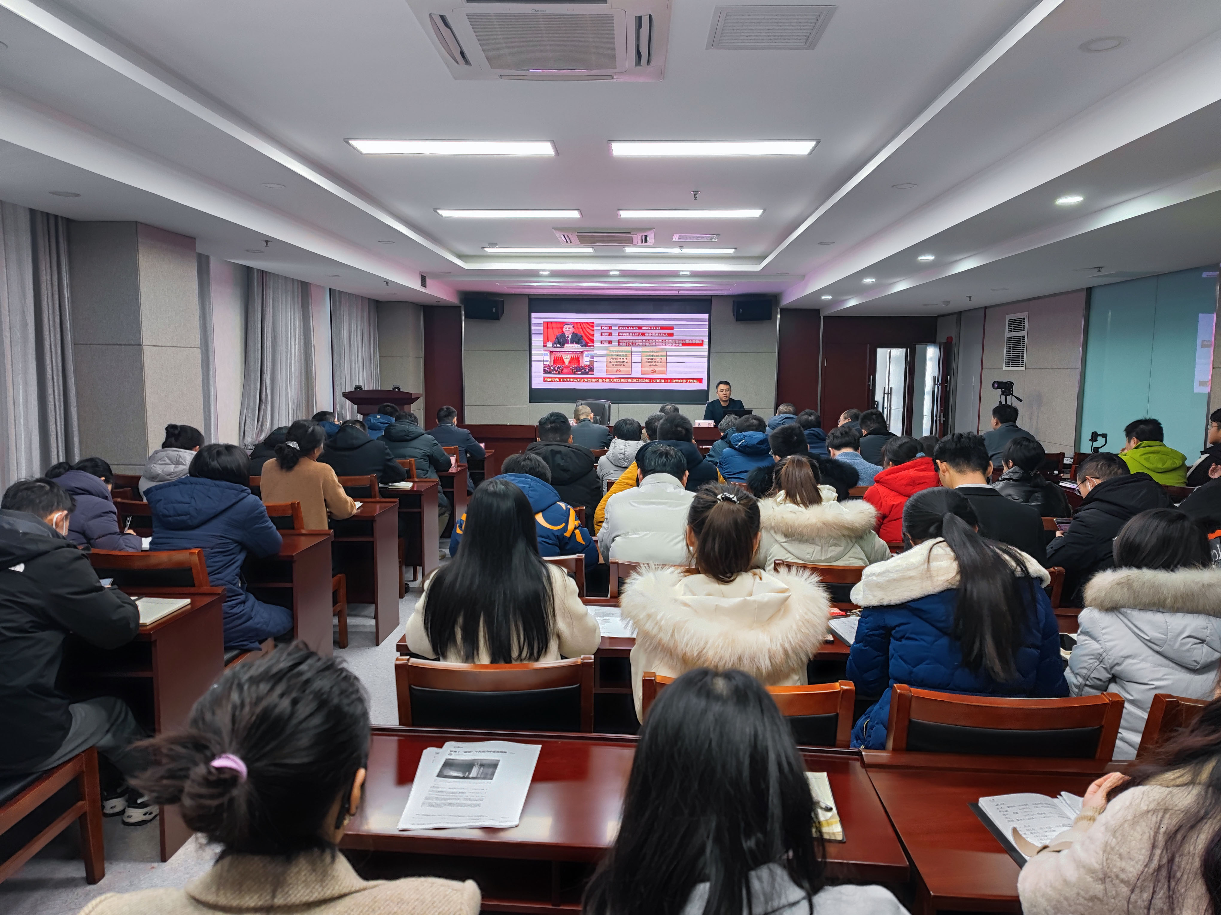 1月7日,市城投公司邀請市委黨校姜輝教授為全體員工開展黨的十九屆六中全會主題宣講會。姜輝教授通過概述黨的百年奮斗取得的重大成就和歷史經(jīng)驗,號召黨員領(lǐng)導(dǎo)干部大力弘揚偉大建黨精神,衷心擁護“兩個確立”、忠誠踐行“兩個維護”。公司全體人員在會前會后唱紅歌、并
