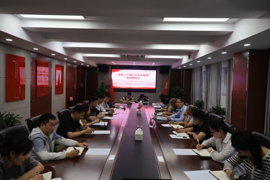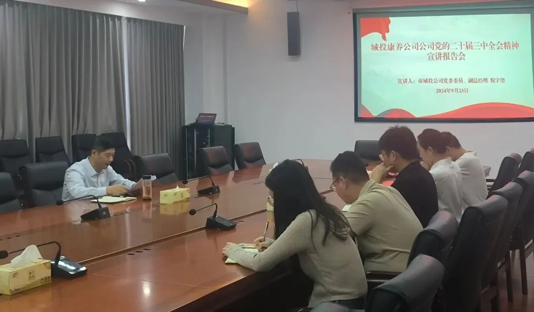 9月23日上午,市城投公司舉行黨的二十屆三中全會精神宣講報告會,黨委書記沈明仕主持會議并作宣講報告,領(lǐng)導(dǎo)班子其他成員及各黨支部書記、各部門負責(zé)同志參加會議。